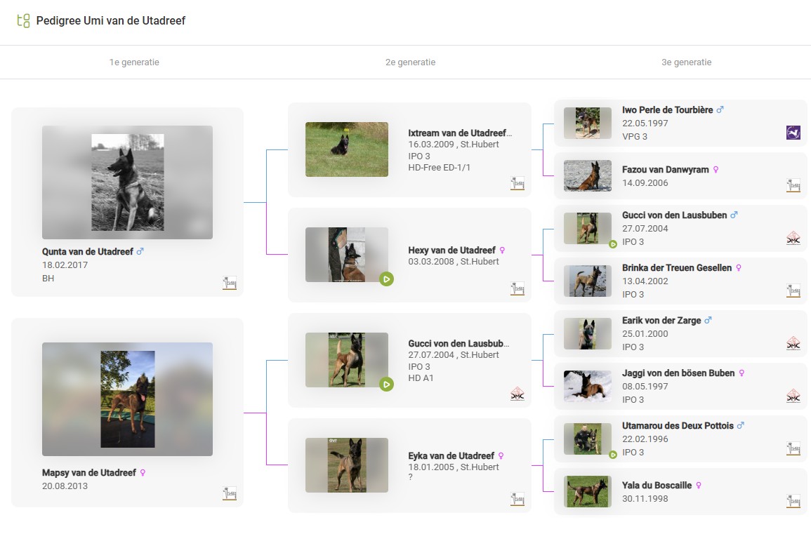 Utamarou's breeding abilities were proven successful, with offspring excelling in IPO, Belgian Ring, KNPV, and Police Dog competitions. His strong genetic traits led to the establishment of the Utadreef Kennel.